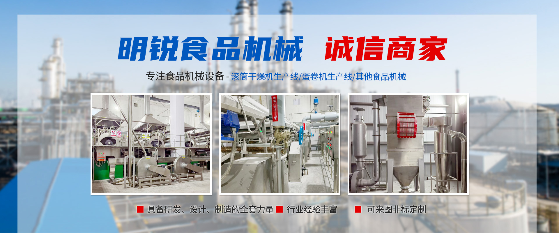 東臺市明銳食品機械有限公司是一個從事食品機械設備設計、制造和安裝調試的專業(yè)廠家,在食品生產(chǎn)工藝、生產(chǎn)流程及設備設計和制造有著多年豐富經(jīng)驗。主要產(chǎn)品有蛋卷機生產(chǎn)系列,滾筒干燥機生產(chǎn)線系列以及其他食品機械。目前各種生產(chǎn)線規(guī)格齊全,國內技術優(yōu)良,產(chǎn)品遠銷亞洲各國及國內二十多個省市自治區(qū)。